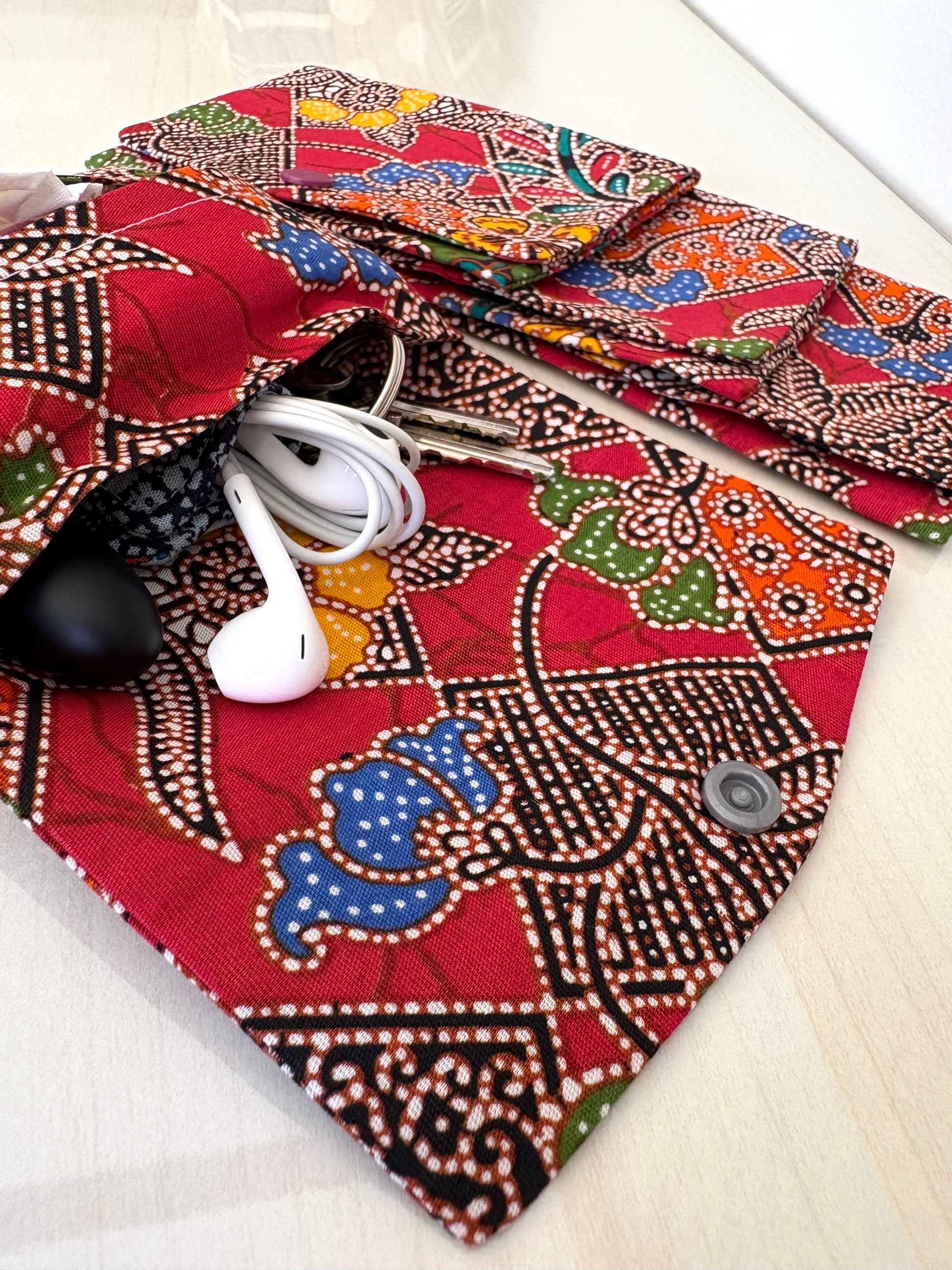 Small and mighty - our Batik pocket tissue holder pouch will keep your tissue packets crumple-free and easy to access, while looking stylish. It also has an extra compartment to organise your small essentials.